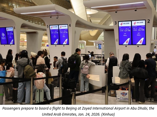 The inaugural flight, operated by Air China and carrying 278 passengers, landed at Abu Dhabi's Zayed International Airport late Saturday night. The route, operated by a Boeing 787 aircraft with four round trips scheduled each week, marked Air China's first newly launched international service in 2026.