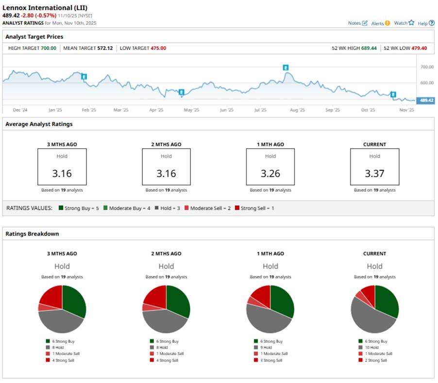 Last month, UBS lowered its price target on LII to $560 from $610, maintaining a “Neutral” rating, citing weaker near-term demand and free cash flow headwinds.