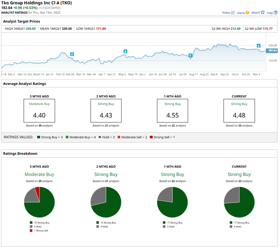 On Nov. 6, Susquehanna’s Joseph Stauff raised its price target on TKO Group to $229 and kept a “Positive” rating.