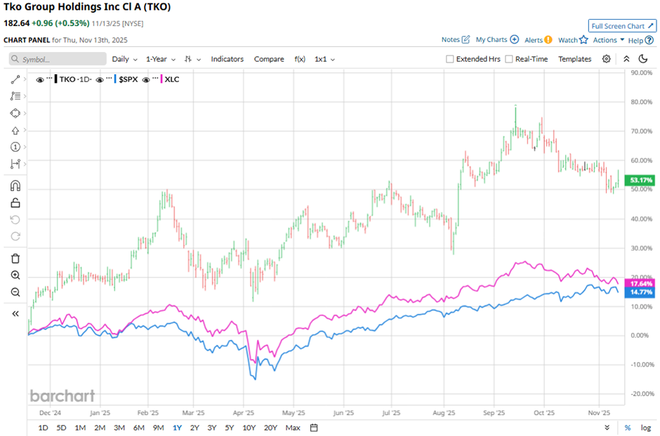 Shares of the New York-based company have surpassed the broader market over the past 52 weeks. TKO stock has surged 55.1% over this time frame, while the broader S&P 500 Index ($SPX) has returned 12.6%. In addition, shares of the company are up 28.6% on a YTD basis, compared to SPX’s 14.6% rise.