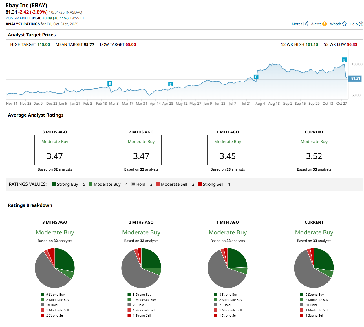 On Oct. 30, Wedbush maintained a "Hold” rating on EBAY, with a price target of $90, implying a 10.7% potential upside from the current levels.