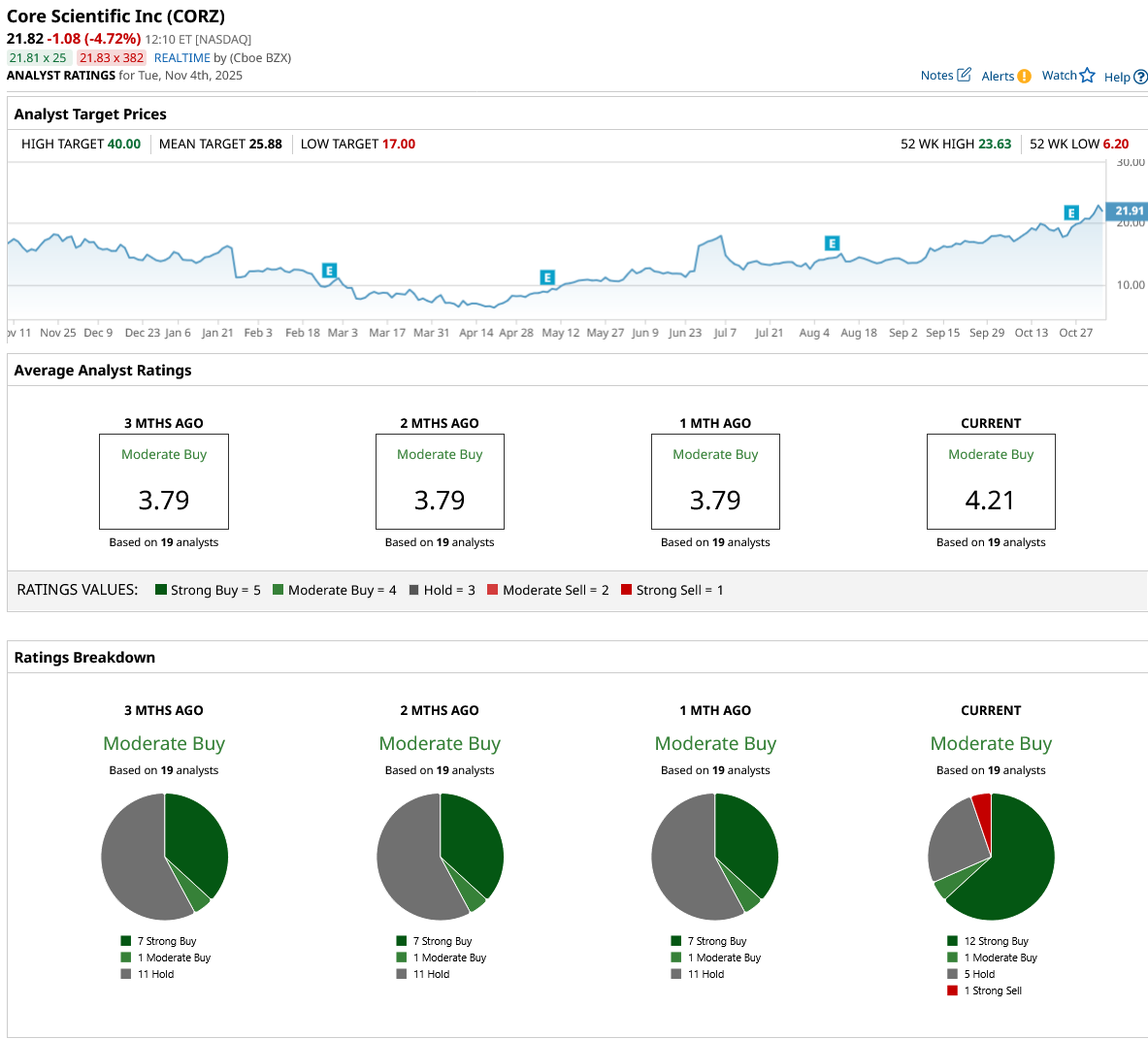 A slew of analysts have been lining up to increase their price targets on the stock. Last week, Cantor Fitzgerald raised its price target on CORZ to $26, with Macquarie hiking its target to $34. B. Riley increased its price target to $30 from $17 the week prior.