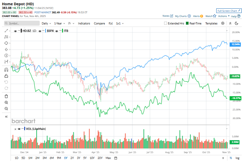 However, zooming in further, HD has outpaced the iShares U.S. Home Construction ETF’s (ITB) 16.9% loss over the past 52 weeks and 4.4% fall in 2025.