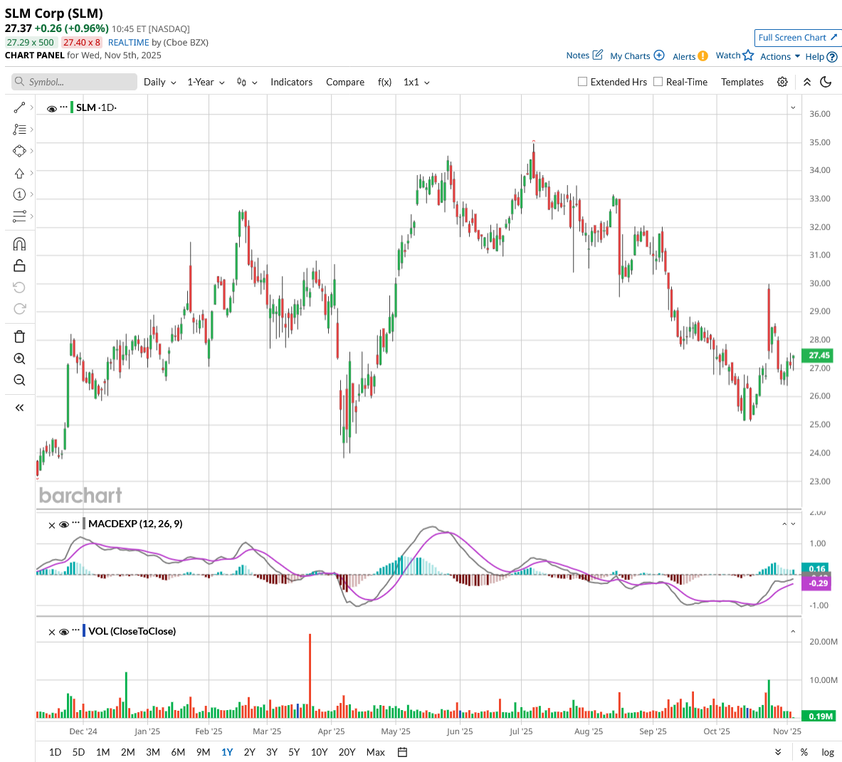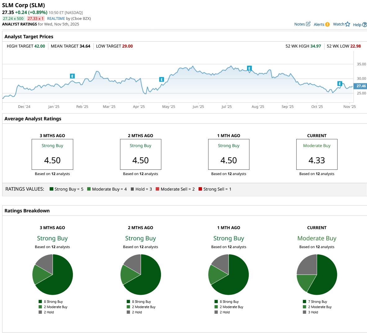 Out of the 12 analysts covering SLM stock, seven recommend “Strong Buy,” two recommend “Moderate Buy,” and three recommend “Hold.” The average SLM stock price target is $34.64, above the current price of $27.35.