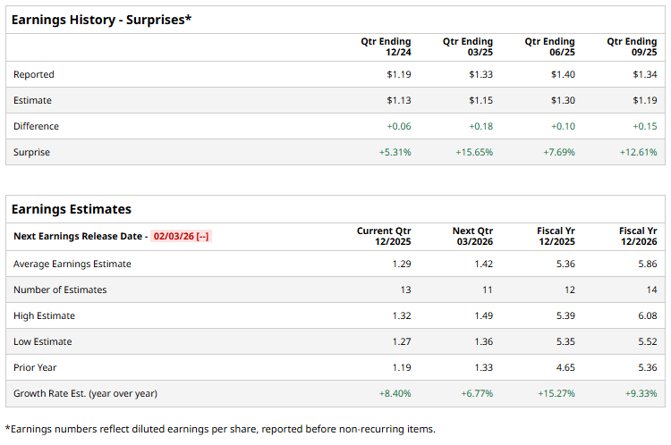 The company is set to unveil its fourth quarter 2025 earnings on Feb. 3, 2026, before market open. Ahead of the event, analysts expect PYPL to report an EPS of $1.29, up 8.4% from the prior-year quarter value of $1.19. On a more positive note, the company has a solid earnings surprise history. It has surpassed the Street’s bottom-line estimates in each of the past four quarters.