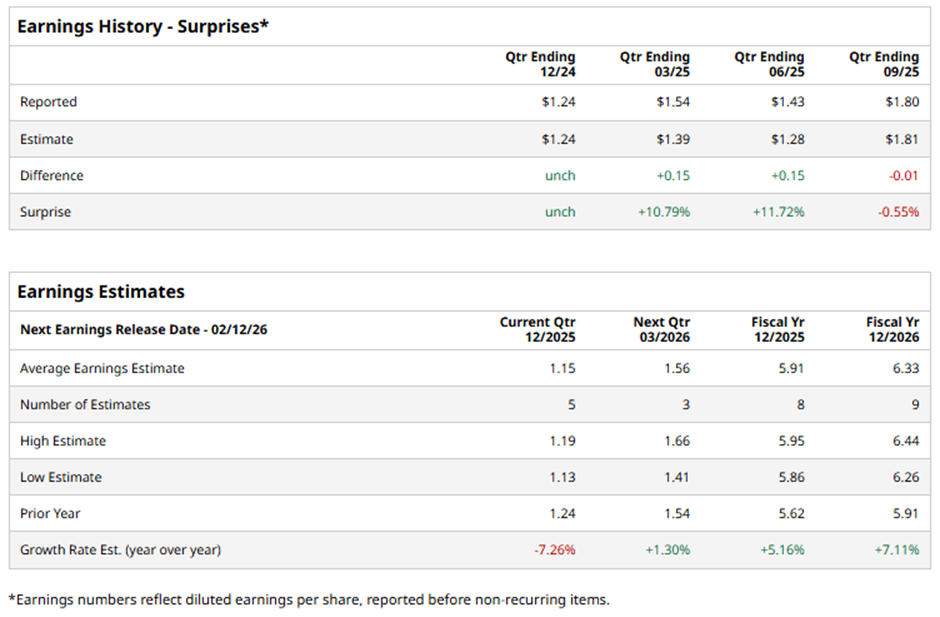 The Columbus, Ohio-based company is expected to unveil its fiscal Q4 2025 results soon. Before the event, analysts anticipate AEP to report an adjusted EPS of $1.15, down 7.3% from $1.24 in the year-ago quarter. It has surpassed or met Wall Street's bottom-line estimates in three of the past four quarters while missing on another occasion.