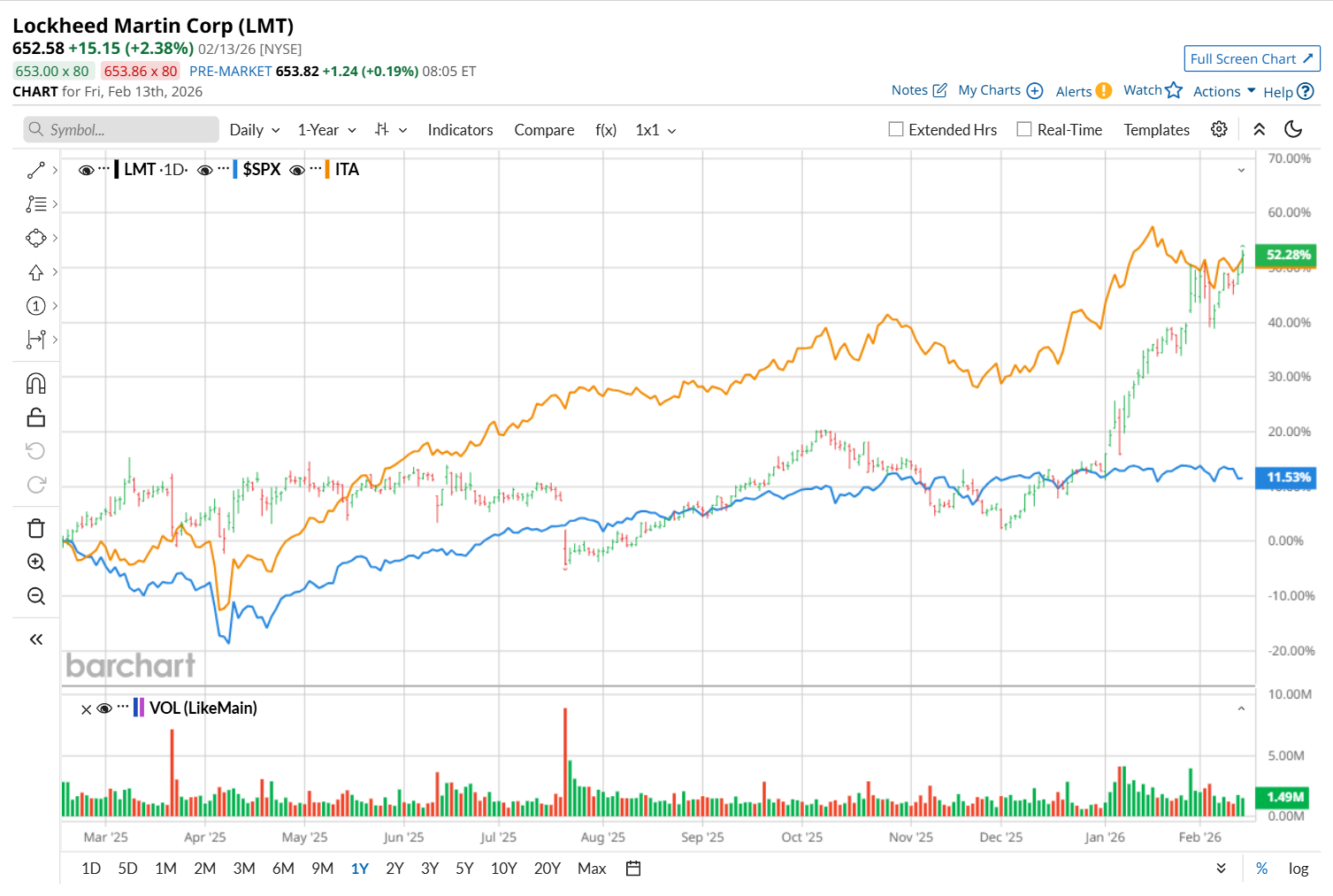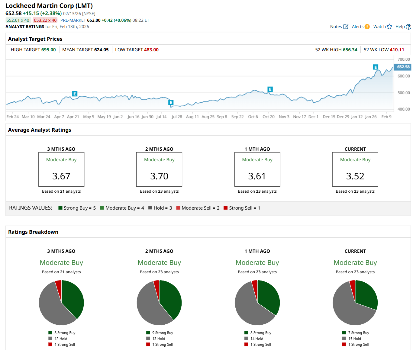 On Feb. 5, BofA maintained a "Neutral" rating on LMT and raised its price target to $660, indicating a 1.1% potential upside from the current levels.