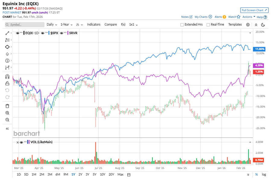 Shares of this world's digital infrastructure company have underperformed the broader market over the past year. EQIX has gained 2% over this time frame, while the broader S&P 500 Index ($SPX) has rallied nearly 11.9%. However, in 2026, EQIX stock is up 24.3%, surpassing the SPX’s marginal fall on a YTD basis.