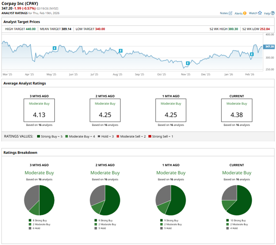 On Feb. 5, RBC Capital raised its price target on Corpay to $363 and maintained a “Sector Perform" rating.