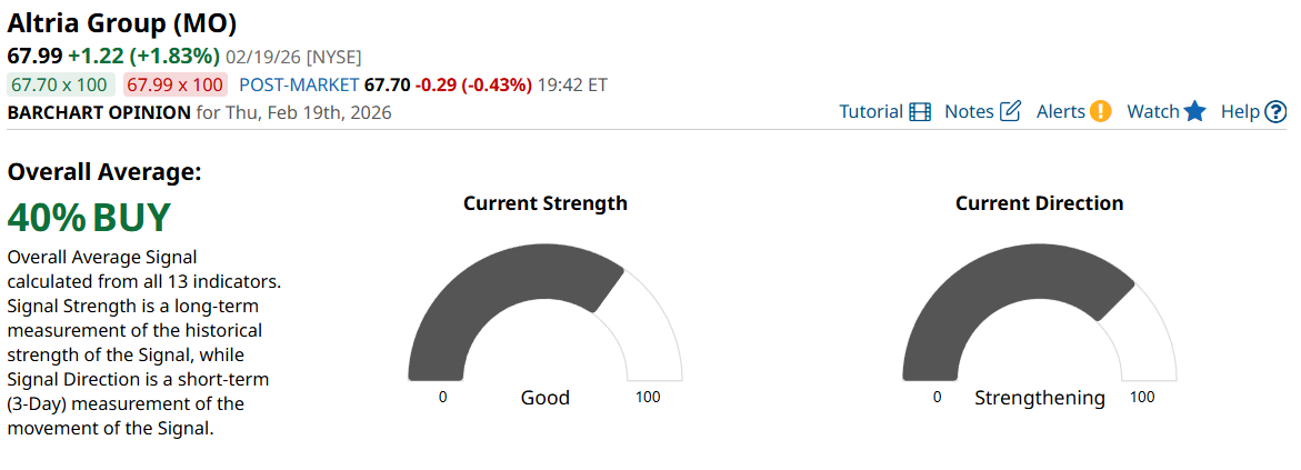 Aside from that, another technical dashboard, Barchart Opinion, shows an overall average of 40% buy with a strengthening trend, suggesting potential bullish momentum.