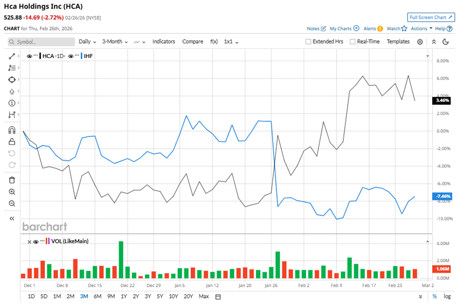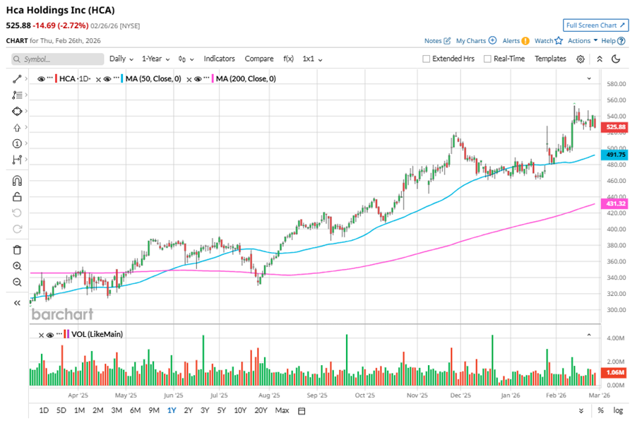 Despite its notable strength, HCA slipped 4.9% from its 52-week high of $552.90, achieved on Feb. 12. Over the past three months, HCA stock gained 2.2%, outperforming iShares U.S. Healthcare Providers ETF’s (IHF) 7.4% dip during the same time frame.