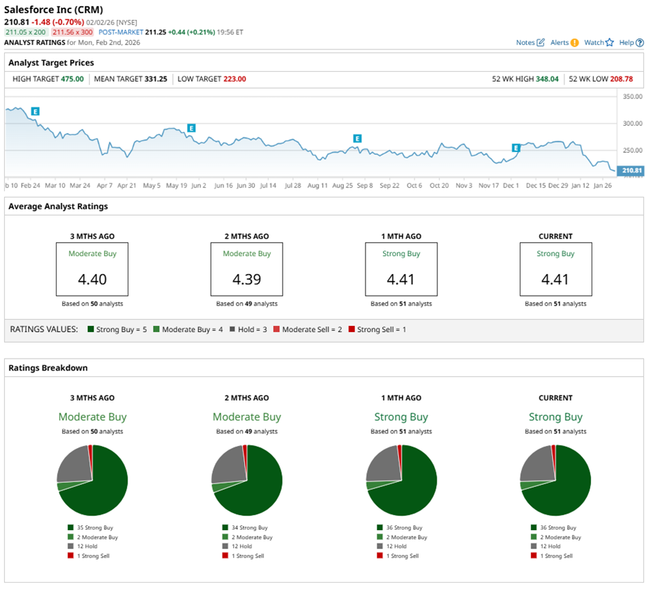 Analyst endorsements soon followed, reinforcing Wall Street’s growing confidence in Salesforce’s trajectory. On Jan. 26, Evercore ISI analyst Kirk Materne reiterated a “Buy” rating and assigned a $340 price target. His stance underscores confidence in Salesforce’s operational momentum and the scalability of its evolving product portfolio.