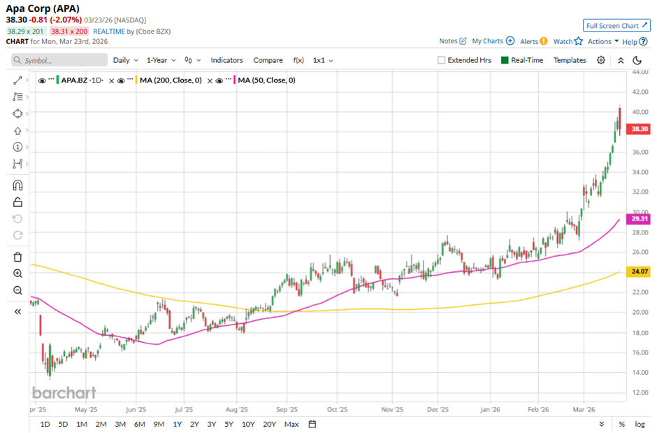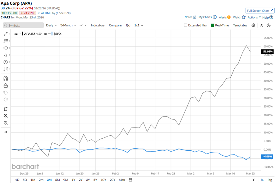 Shares of the Houston, Texas-based company have pulled back 3.5% from its 52-week high of $39.51. APA stock has surged 57.7% over the past three months, surpassing the broader S&P 500 Index's ($SPX) 3.9% drop in the same period.