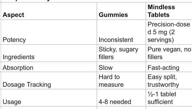 Unlike sugary gummies with inconsistent potency and slow absorption, Mindless mushroom offers a pure formula free from fillers, additives, and sugar highs, delivering elevated vibes and mental clarity on demand.