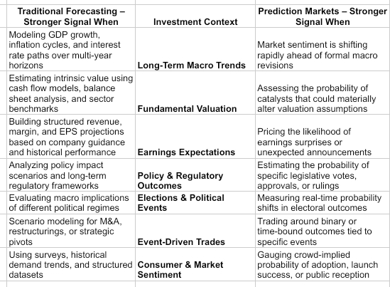 Is It Traditional Forecasting or Prediction Markets for Investors?