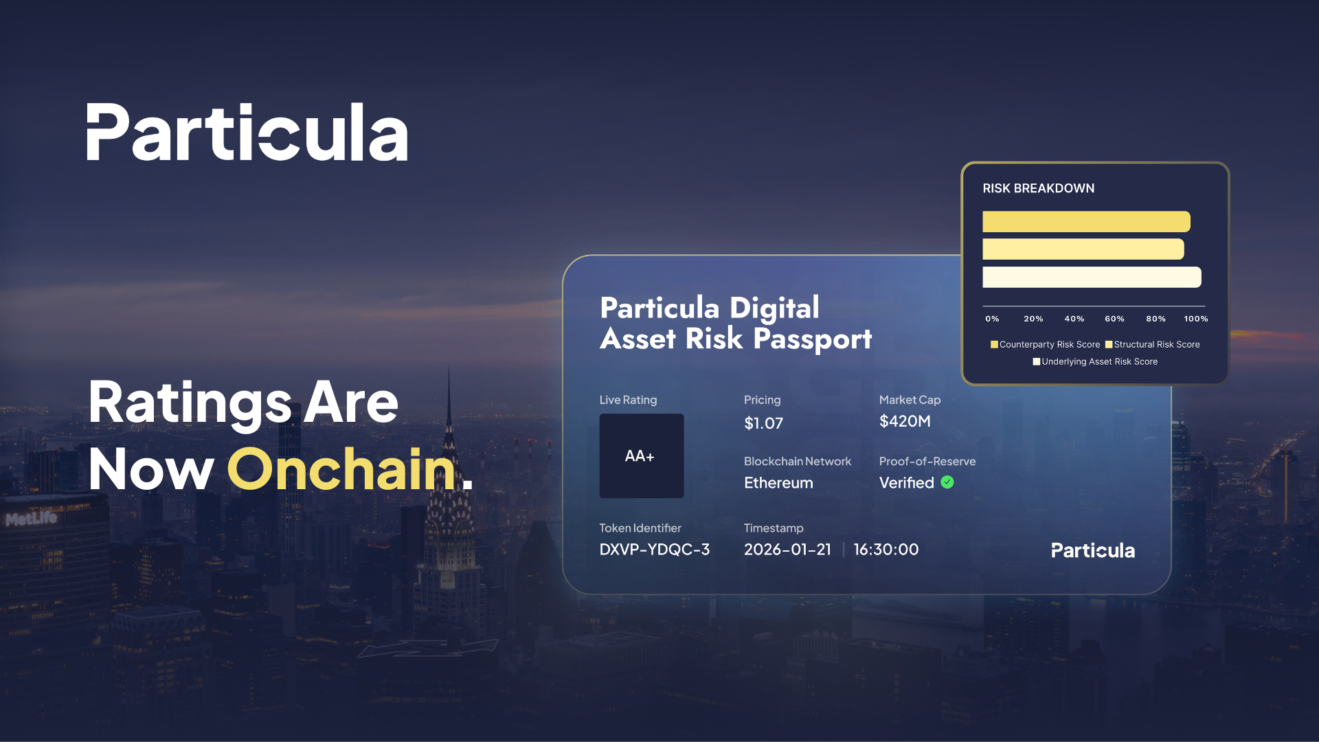 “Institutional capital won’t move onchain at scale until risk is as transparent and composable as the assets themselves,” said Timm Reinsdorf, Co-Founder & CEO of Particula. “We’ve spent years rating tokenized assets across structures, jurisdictions, and asset classes. Now we’re encoding that expertise directly onchain. The Risk Passport makes ratings and associated metadata interoperable and executable for the next wave of digital capital markets.”