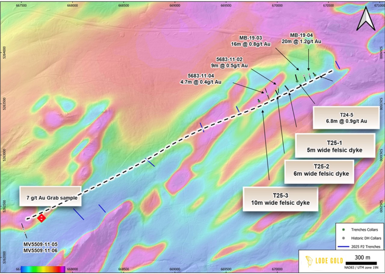 The assays from selected grab samples from the trenching program show results of up to 6.1 g/t Au and 6.9 g/t Au in trench T25-1 (Figure 2).