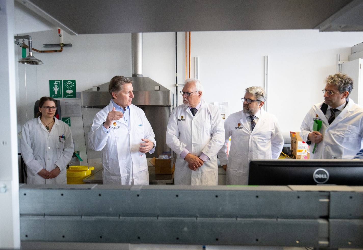 Bill Best (second from left), Head of Projects at Triple Point Resources, discusses the energy storage potential of the Fischells Salt Dome during a facility tour at the University of Calgary on March 18, as part of a Genome Canada funding announcement.