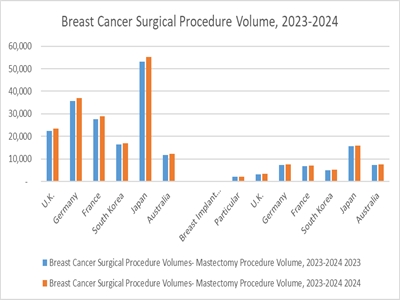 South Korea and Australia show steady increases in breast oncology surgeries, reflecting improved early detection and patient access.