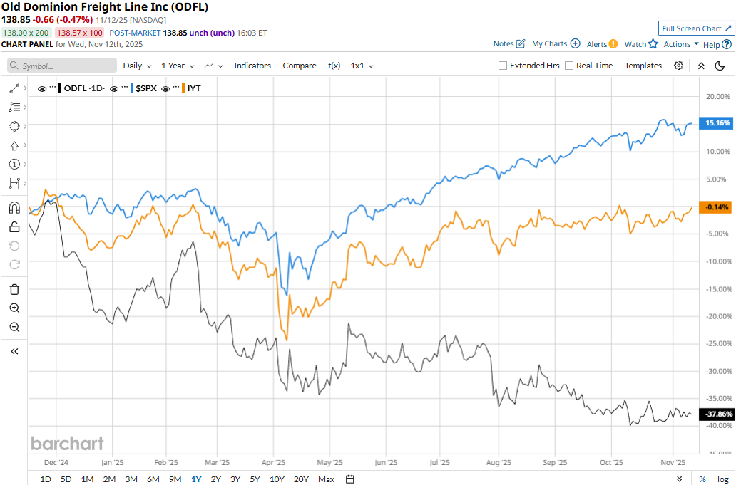 Narrowing the focus, ODFL has also underperformed the industry-focused iShares Transportation Average ETF’s (IYT) 8% uptick in 2025 and marginal 29 bps dip over the past 52 weeks.