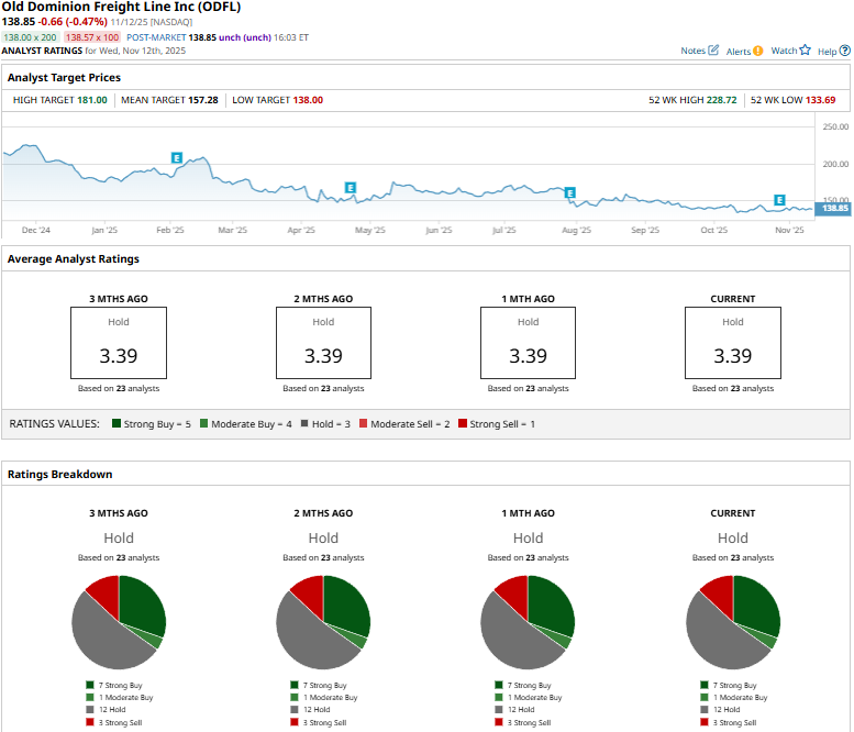 As of writing, ODFL’s mean price target of $157.28 represents a 13.3% premium to current price levels. Meanwhile, the street-high target of $181 suggests a notable 30.4% upside potential.
