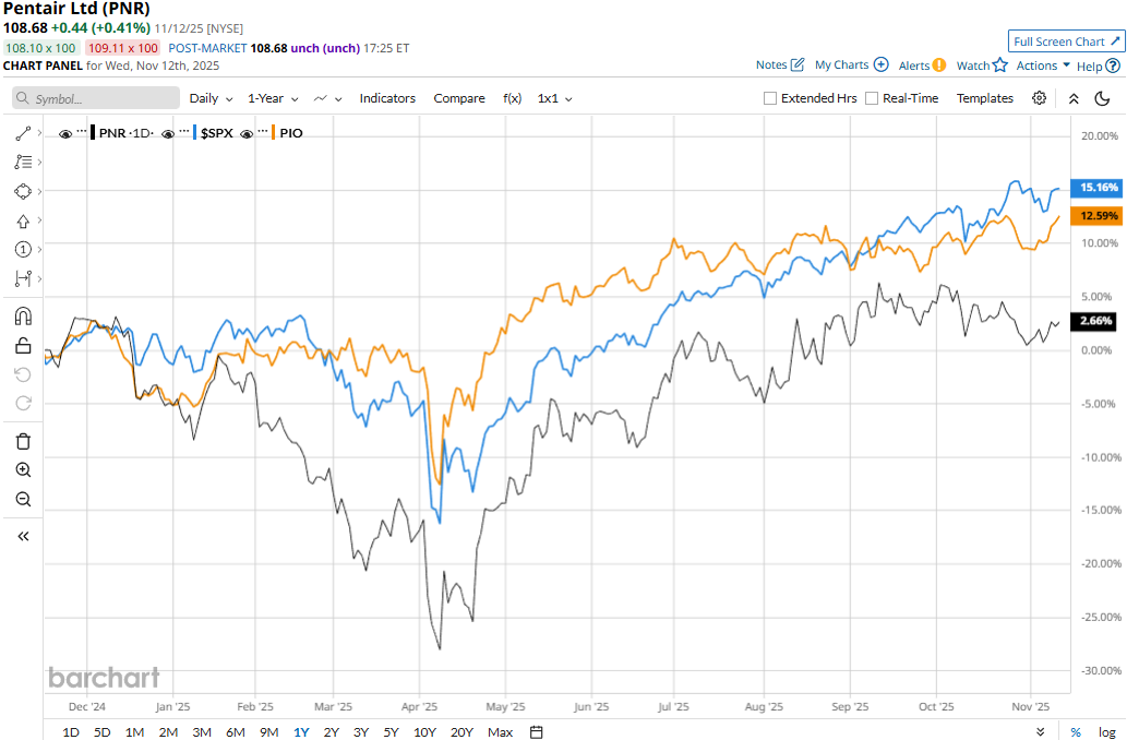 The water solutions giant has notably underperformed the broader market over the past year. PNR stock prices have gained nearly 8% on a YTD basis and 4.4% over the past 52 weeks, compared to the S&P 500 Index’s ($SPX) 16.5% gains in 2025 and 14.5% returns over the past year.