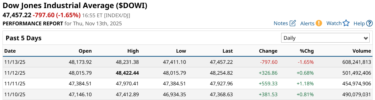 Changes of 300-800 points a day. Now, in the market of 2025, with the Dow Jones Industrial Average ($DOWI) having just crossed 48,000 for the first time ever, a move of that magnitude is in the 1% volatility range. But the Dow was around $1,800 when I started my career (1986), and it was only at $2,746 at its 1987 peak, just before it crashed in October.