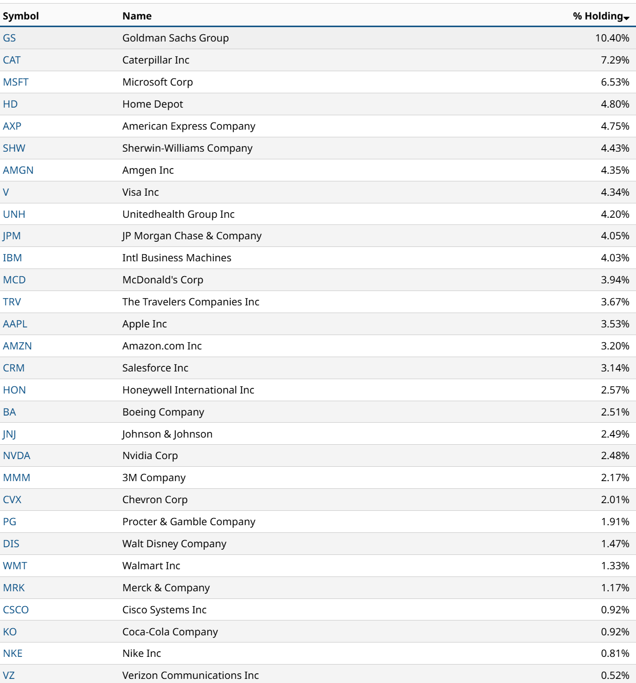 However when we look forward, there are issues, and they appear at the top of that list above. Because while the Dow is not loaded up size wise the way the S&P 500 and Nasdaq-100 are, it still has a problem with a concentration of holdings.