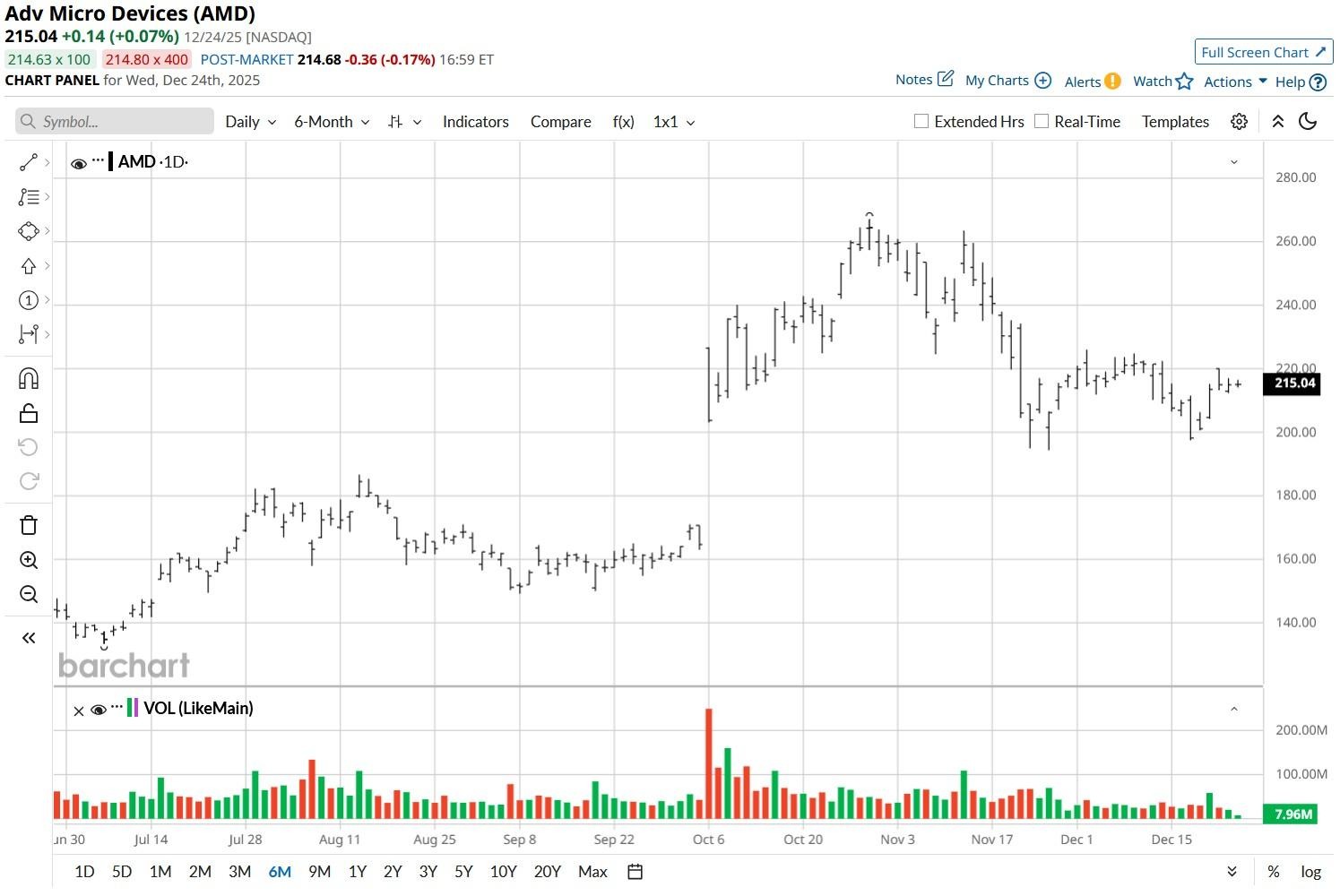Advanced Micro Devices (AMD) shares had a blockbuster 2025 as the company succeeded in positioning itself as the price-to-performance leader in artificial intelligence (AI) chips.