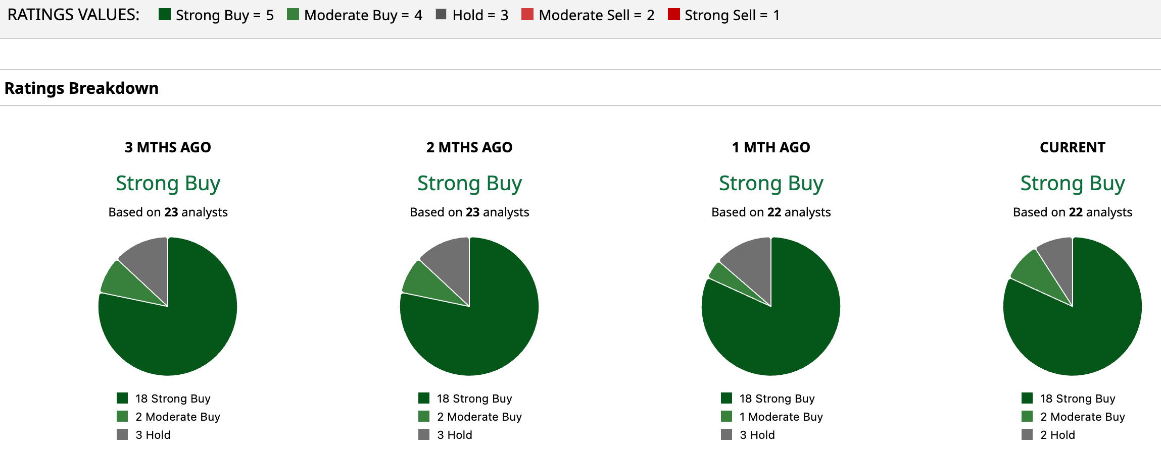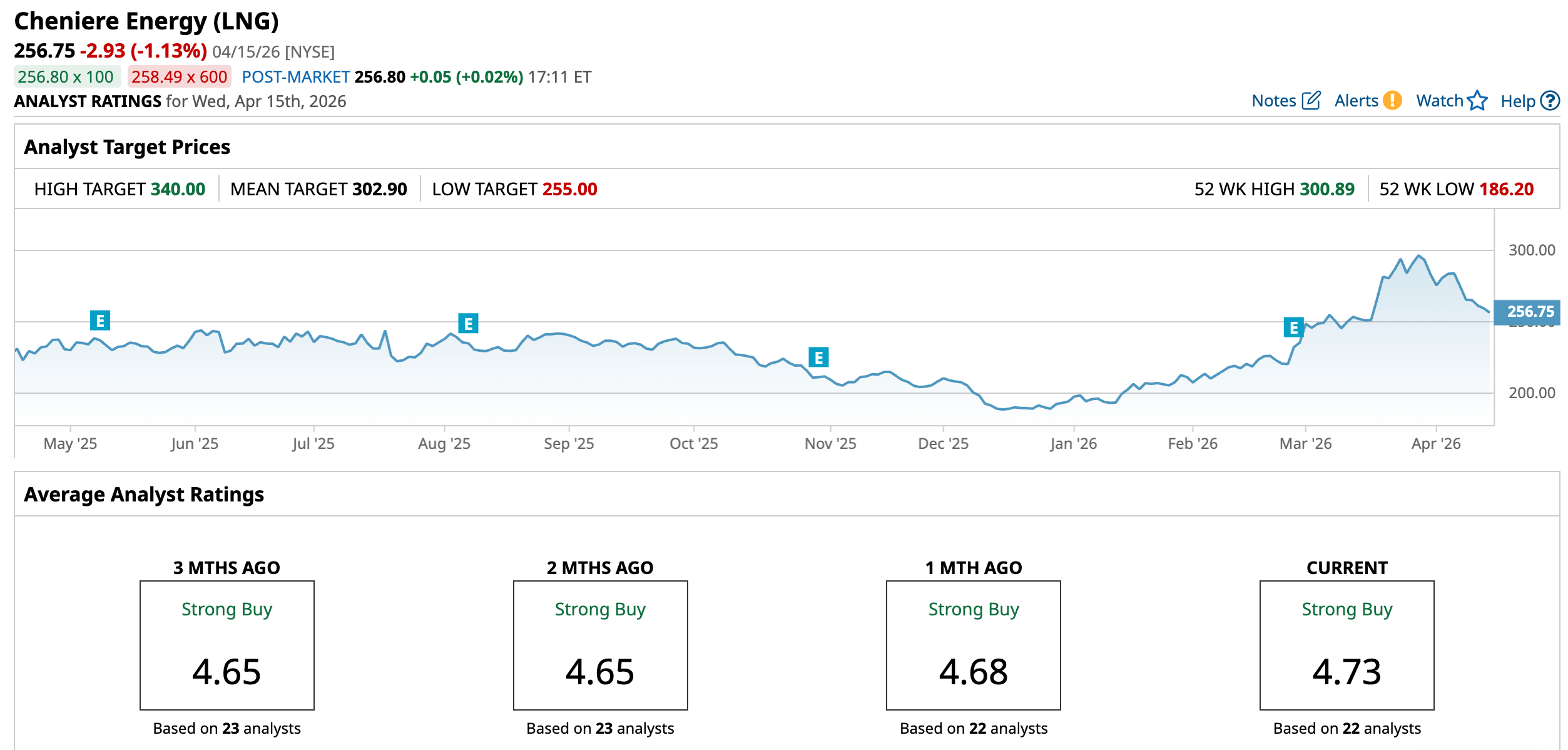 Cheniere has come into the spotlight, with analysts awarding it a consensus “Strong Buy” rating overall. Of the 22 analysts rating the stock, a majority of 18 analysts have given it a “Strong Buy” rating, two analysts suggest “Moderate Buy,” while two analysts are playing it safe with a “Hold” rating. The consensus price target of $302.90 represents 18% upside from current levels. The Street-high price target of $340 indicates a 32.43% upside.