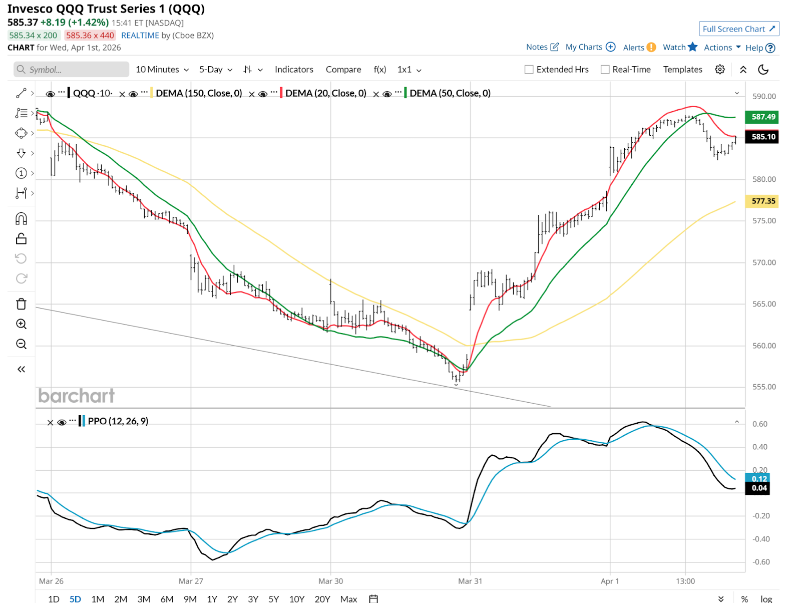 What a party the market had on Tuesday, March 31! The Nasdaq 100 ETF (QQQ) jumped 3.8%, then tacked on more gains Wednesday.