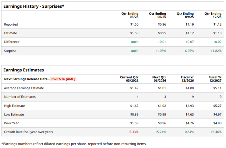 With a market cap of $26 billion, Eversource Energy (ES) is a public utility holding company that provides energy delivery services across electric, natural gas, and water distribution segments. It operates primarily in Connecticut, Massachusetts, and New Hampshire, supplying electricity transmission, solar power, natural gas, and regulated water services to a wide range of customers. It is expected to unveil its fiscal Q1 2026 results after the market closes on Thursday, May 7.