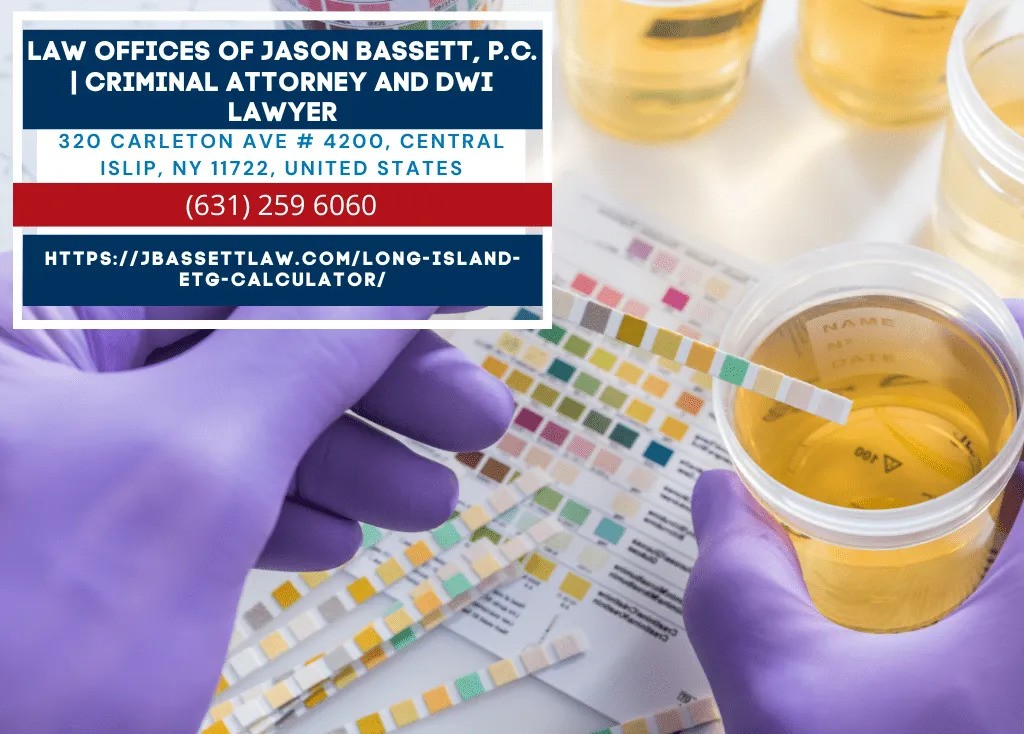 Suffolk County, New York - Jason Bassett of the Law Offices of Jason Bassett, P.C. (https://jbassettlaw.com/long-island-etg-calculator/) has released an online Long Island EtG Calculator designed to help the public understand alcohol detection windows and the limits of Ethyl glucuronide testing. The launch aligns with the firm’s ongoing focus on DWI defense in Suffolk County and Long Island, and reflects the commitment of a leading Suffolk County DWI attorney to provide clear, accessible information about testing protocols frequently cited in probation, treatment, and administrative settings.