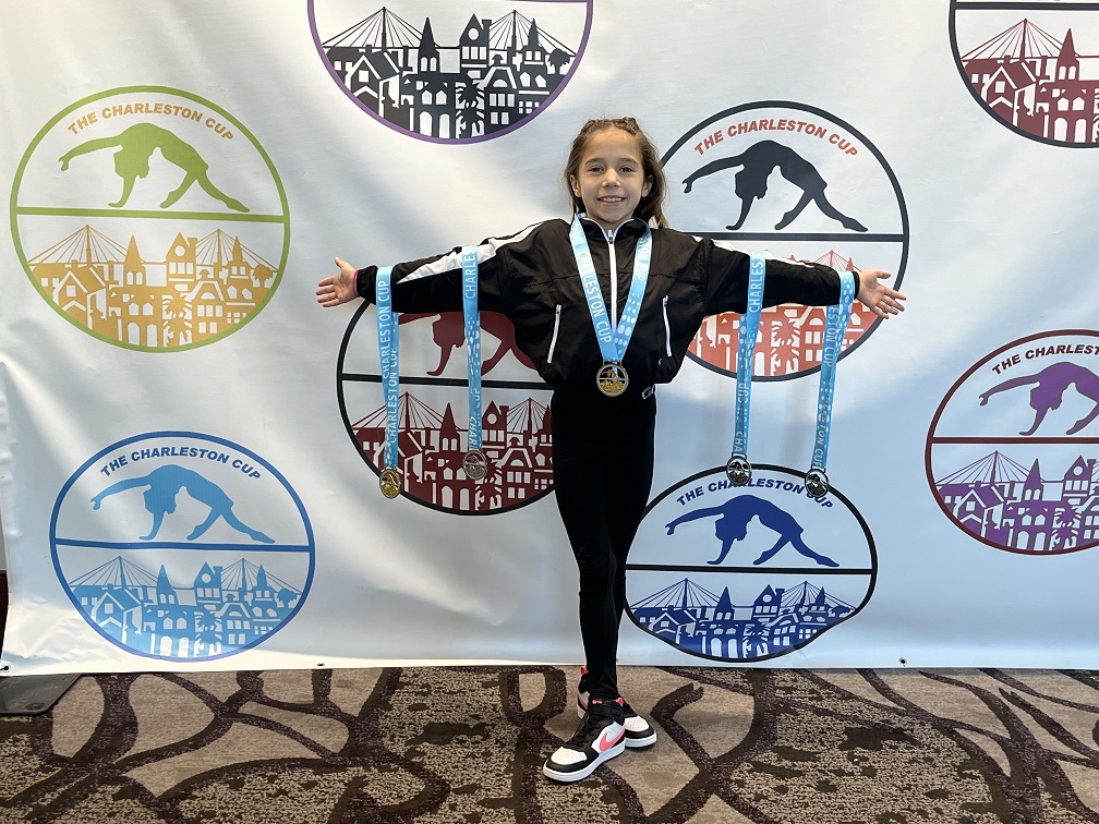 ORLANDO, Fla - October 31, 2024 - 10-year-old Jocelyn James has won a gold medal at the 2024 Charleston Cup in South Carolina, with an all-around score of a 37.950. Jocelyn, fondly known as “Joccy” (pronounced Joss–ee), won a personal gold medal for her spirited floor exercise, and brought home silver medals for uneven bars, balance beam, and vault.