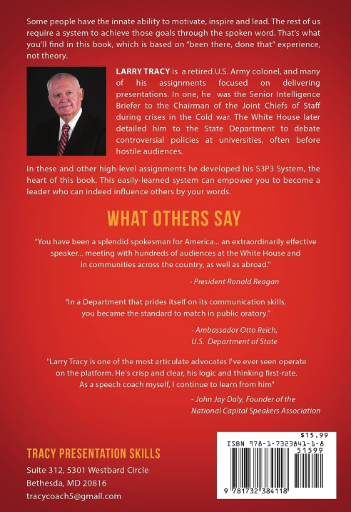 A good start would be adopting Larry Tracy's S3P3 System, the heart of his new book, "How to Bring Home the Bacon: Becoming a Persuasive Speakerwith the Proven S3P3 System." Larry Tracy, a now-retired Army colonel, employed this methodology to deliver hundreds of high-pressure briefings to the top leaders in the Pentagon and later to hostile audiences throughout the country on behalf of the White House.