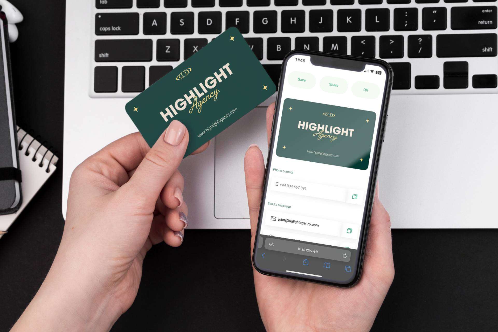 This is how the NFC Business Card represents the counterpart of paper cards, as Knowee's main purpose is to lead the transition towards a world where sharing contact information is more sustainable.