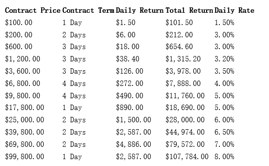 After activation, daily profits are automatically distributed, and the full principal is returned at contract completion.