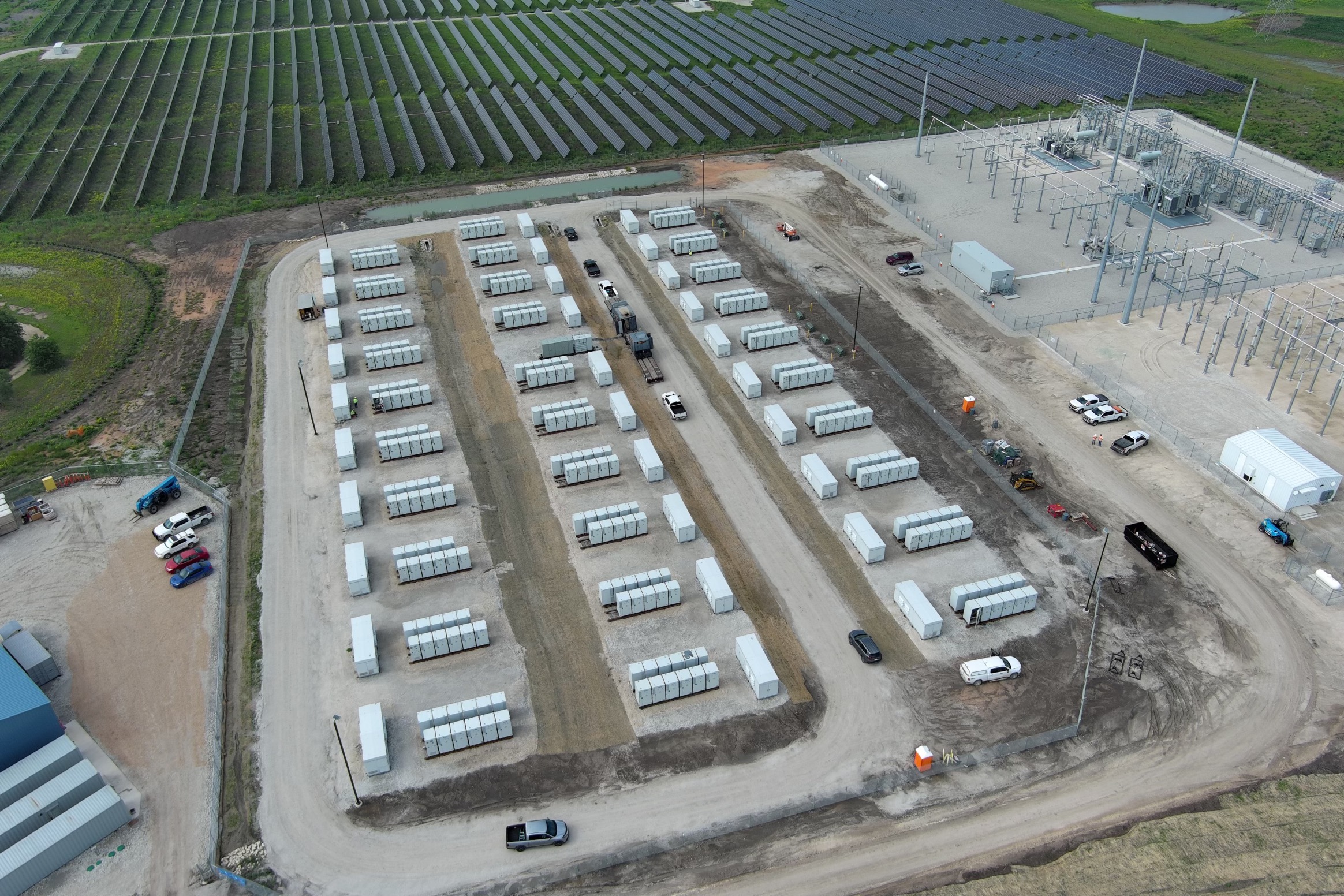 The storage system can dispatch electricity into the grid when needed, including the ability to meet peak hour electrical needs of some 10,000 average homes. The system can be charged both from the co-located solar facility as well as from the wider grid, when appropriate.