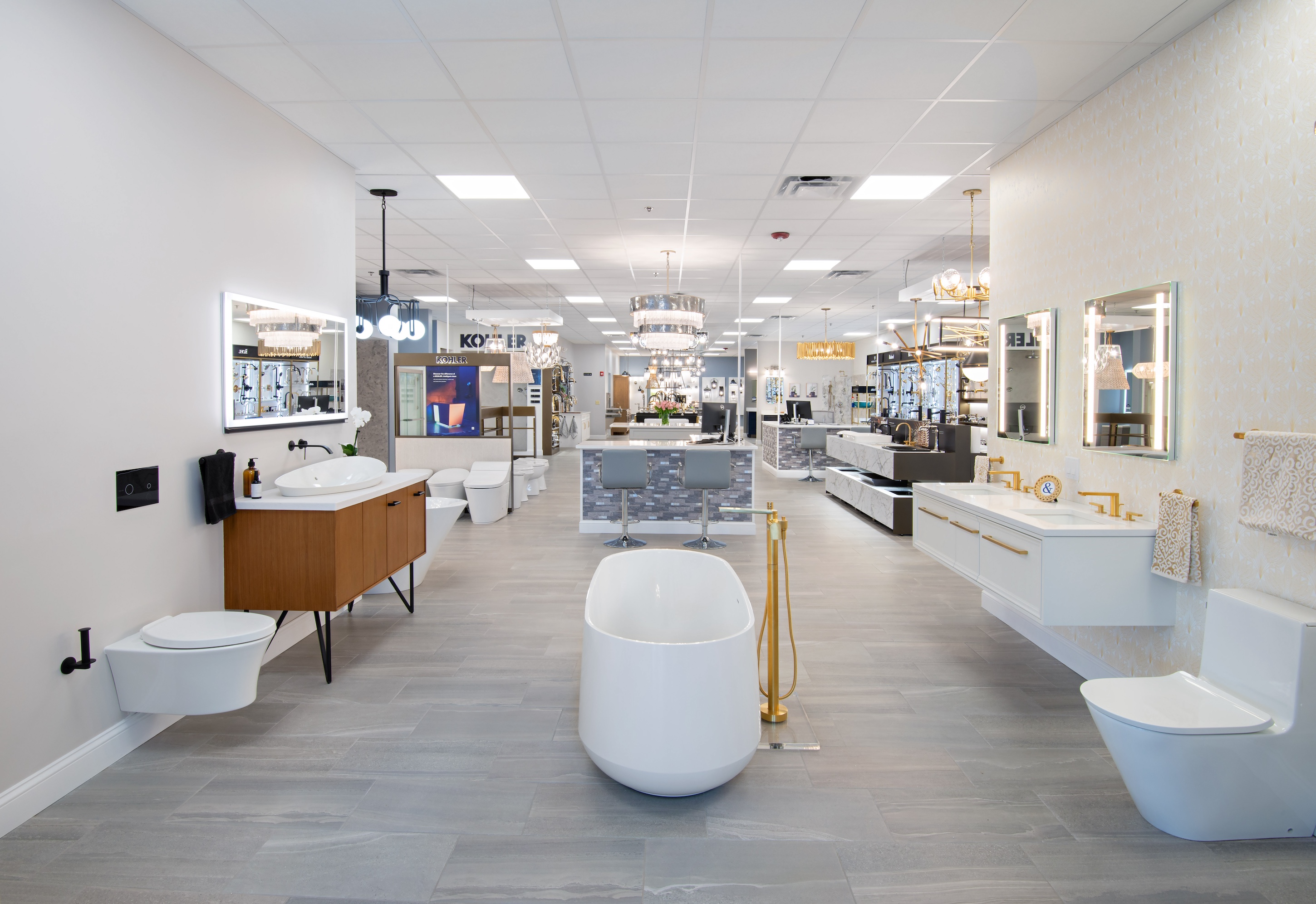 Portsmouth's 3,400-square-foot showroom is designed to be an inspiration center that showcases a wide variety of bath, kitchen, and lighting products in beautiful settings. Visitors will find Kohler bath and kitchen products at 25% off retail pricing every day and can explore many other world-class brands such as Kallista, Robern, House of Rohl, Bertch, and BainUltra. Simply by lifting their gaze, guests can also view an array of innovative lighting fixtures for the entire home from Hinkley, Frederick Raymond, Lark, and Kohler. “It’s impossible to show every lighting fixture available, so we carefully curate different classic and trending styles for the showroom visitor to see in person,” says Dan Lorenz, Sink & Spout Showroom Sales Director, who adds, “and if you envision something different for your home, we can order every style from their collections.” This makes Sink & Spout a one-stop shop for many home projects.